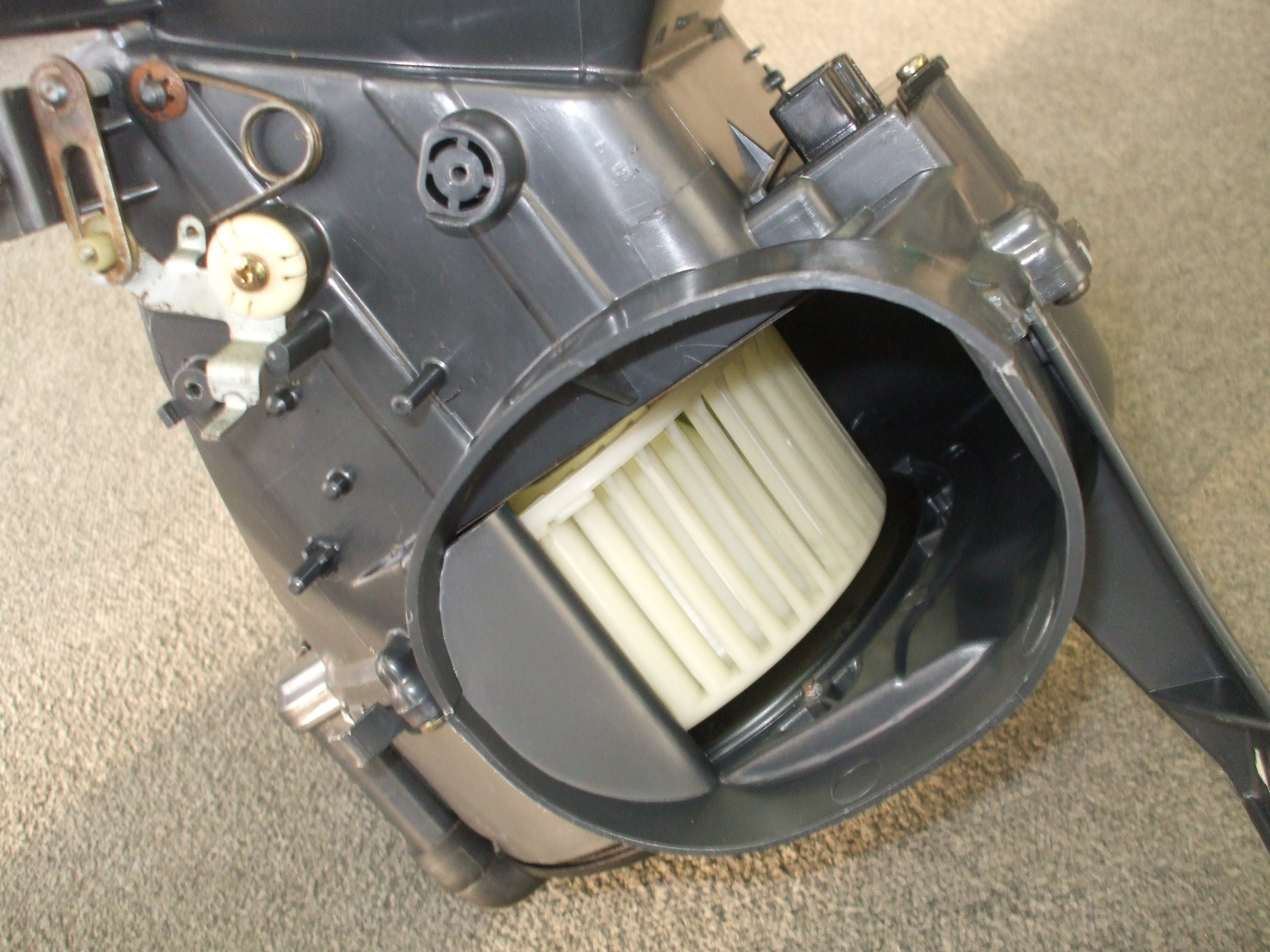 2016年4月8日 (金) | レストア情報 AE85トレノ3ドア白/黒 20バルブ セミレス バルブの組み付けに入ります。 まずはバルブステムシールの新品を打ち込みます。 きちんと挿入したのを確認して組み付けます。 ホーシングはもちろんAE86用に換わります。 ドラシャを抜いてベアリングの確認をしましたが 両方とも要交換の状態でした。(ちょうど良かったです!) デフは先日ガレージアネックスさんでO/Hしてもらったものを 取り付けますのでキャリアごと交換します。 最後に当社スタッフNによるブロアモーターの清掃。 最近、洗浄、組み付けがかなり早いです! 負けそうです!