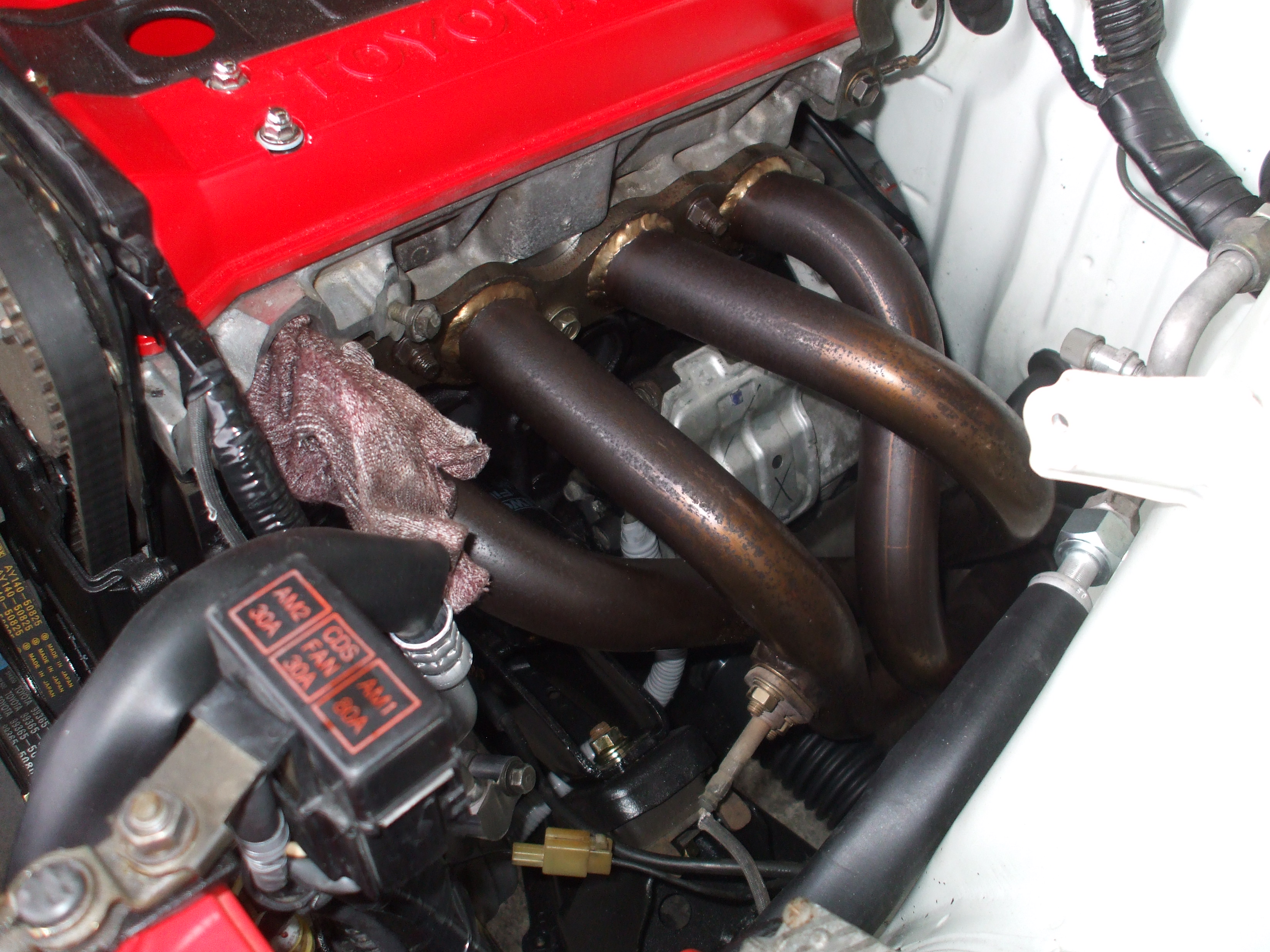 2016年7月28日 (木) | レストア情報 AE85レビンSR AE86化します。 EXマニを取り付けエンジン始動です。 エアー抜きを行い点火時期を合わせて終了です。 明日、内装を組み付けいよいよ週末に展示します。