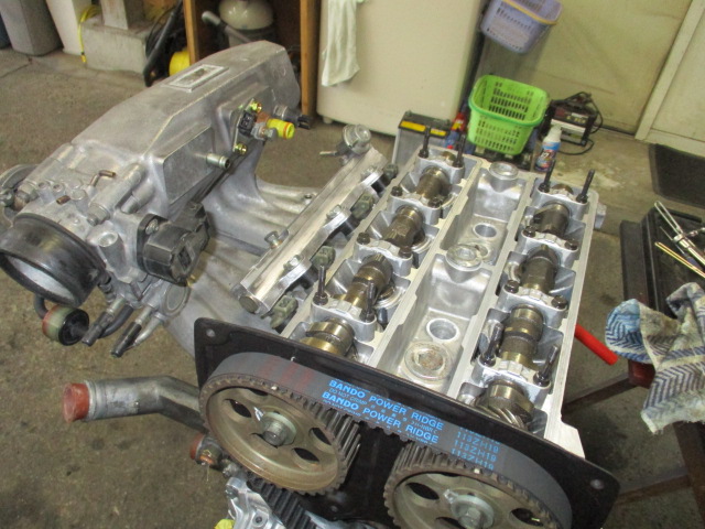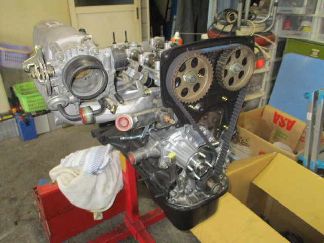タイミングベルト、ウォーターポンプ、インマニ等の取り付け完了です。